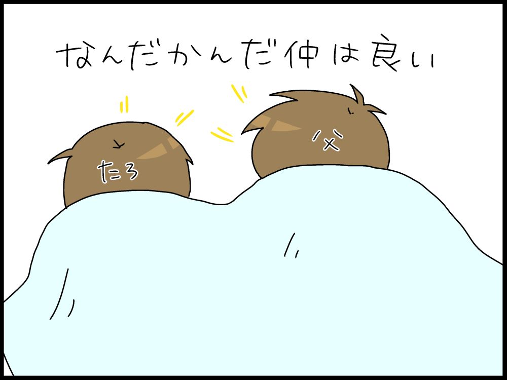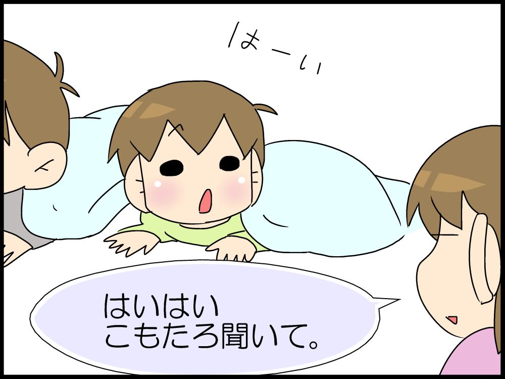 この日は、父と子の布団談義。