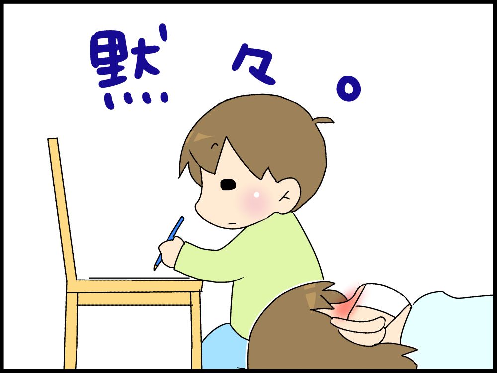 すぐ横で宿題をやっていた、こもたろ。
