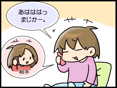 お食事中の方はご遠慮ください。 2014-3-17 カテゴリ: こもたろ 本日は汚い表現が含まれている内容です。お食事中の方、すぐに気分が悪くなる方はご遠慮ください・・・m(_ _)m金曜日の夕方、電話中。お相手はこの人。お馴染み、カレン母さん。登園日が週1と、なかなか会えないのでたまーにこうやって電話で話したりしてます。なんだ?こも