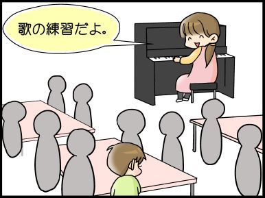 幼稚園の音楽発表会。本番前。 2014-12-11 カテゴリ: こもたろ 先日、幼稚園で音楽発表会がありました。年長さんがやる内容は合奏、歌、劇。この日は、母ちゃんは裏方の支援にまわります。発表会の当日、本番前にみんなで歌をうたいました。本番で歌うのを、ひと通り練習。どうかなーと思ったのですがこもたろは楽しそうに歌い振り付けも