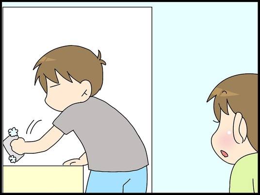 お風呂掃除…あれ?お父さんがやってる。 2019-8-10 カテゴリ: こもたろ 父ちゃん この間の週末。こもたろ「おふろ、あらってきまーす」こもたろが風呂場に行ったら父ちゃんがお風呂を洗ってた。こもたろ、すぐにリビングに戻ってきた。そして父ちゃんがリビングへ。う ん 、 し っ て るまぁ、確かに洗ってるところを見たんだから知ってるってなるよ