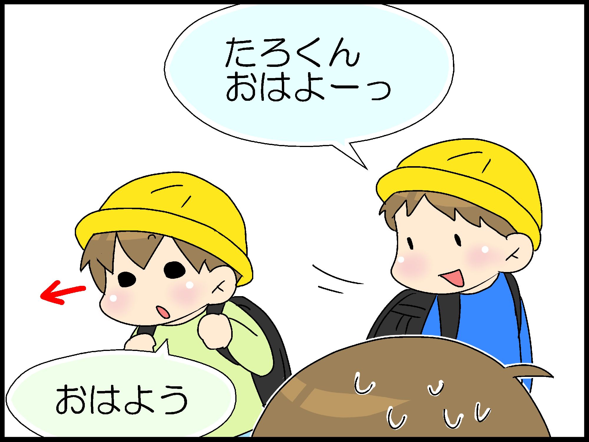 挨拶で目を合わさなくてもこもたろう君の優しさに気づけるお友だち、