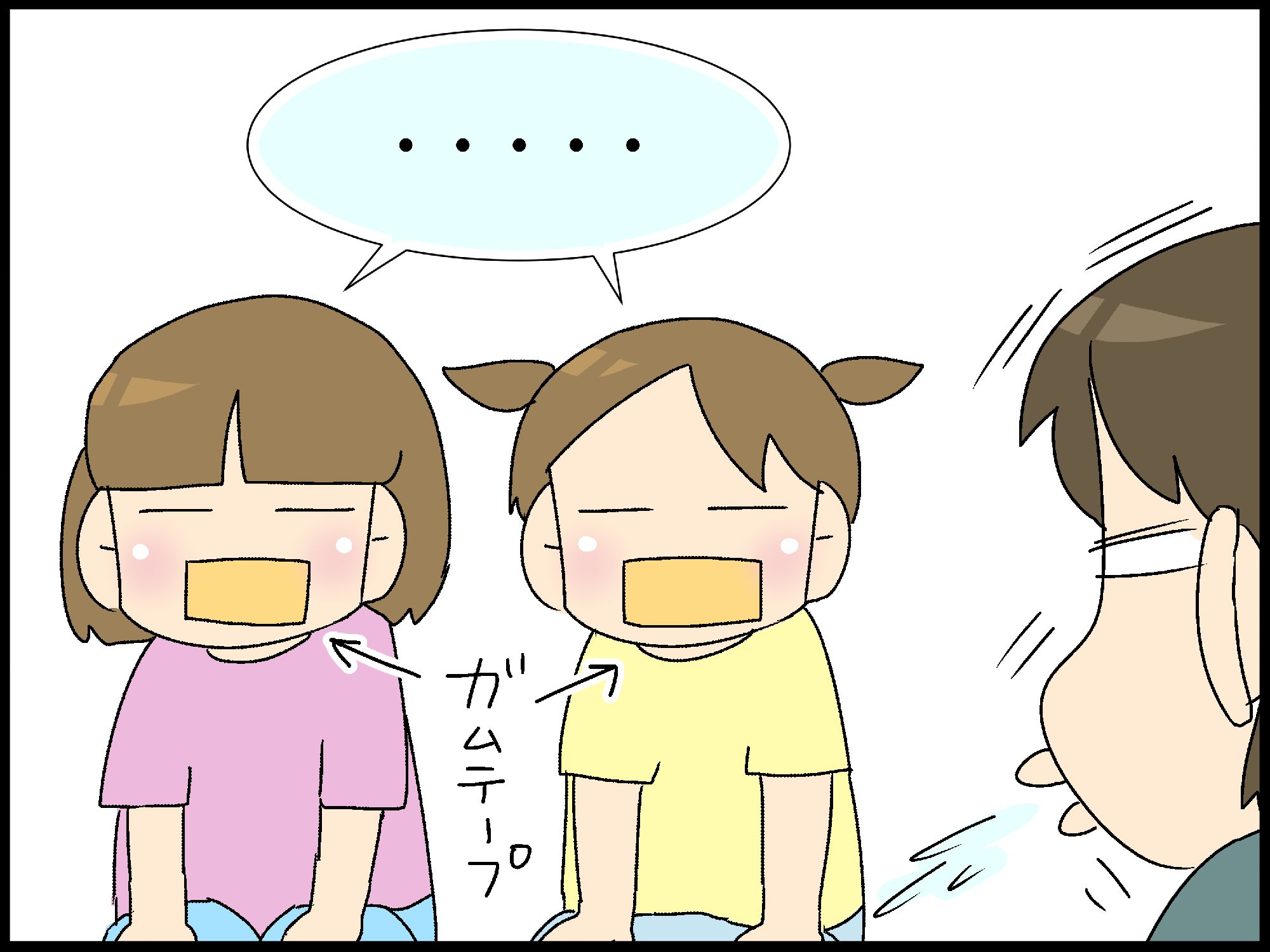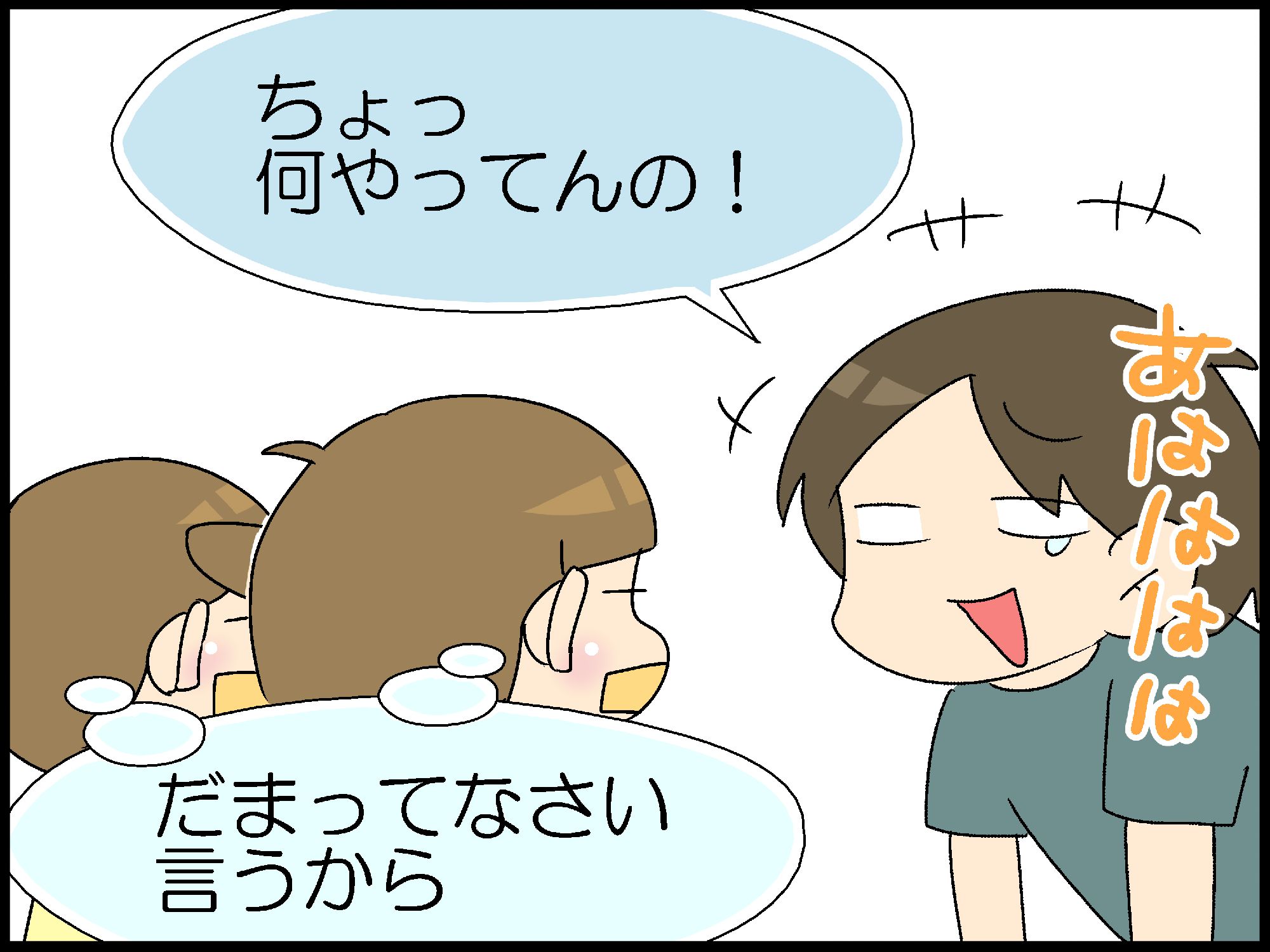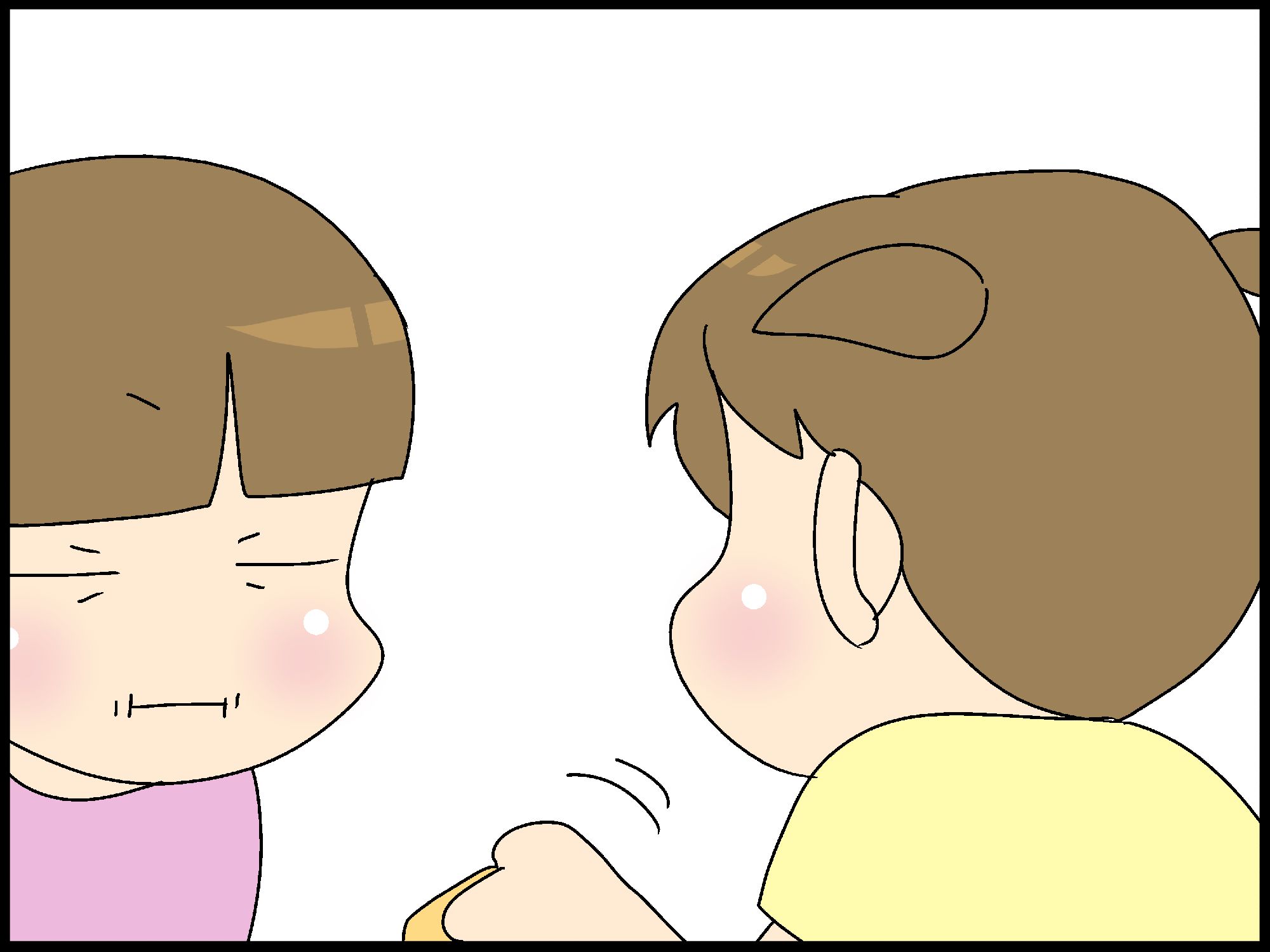 反省した、こども母ちゃんと妹。