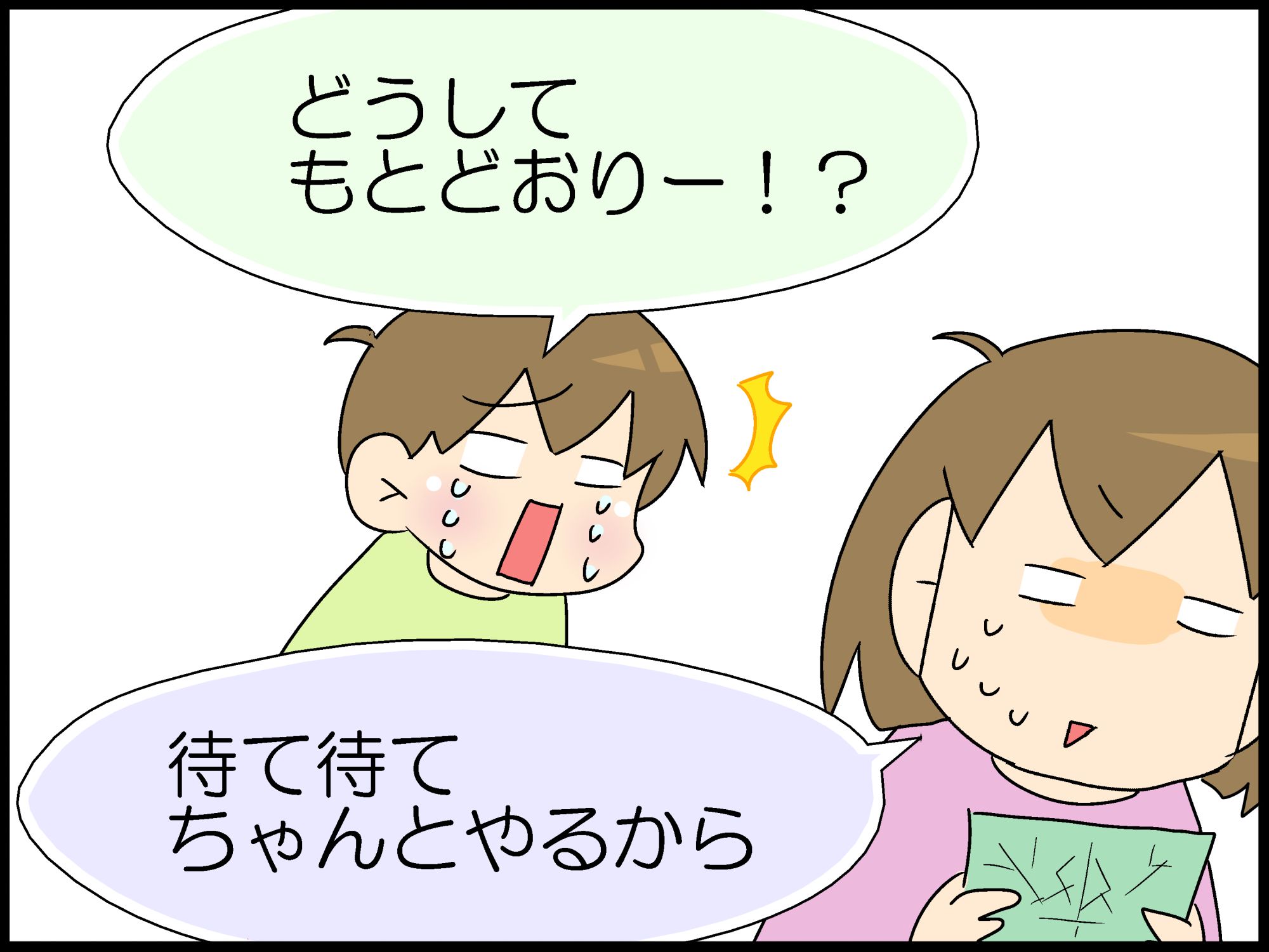 こもたろ、また泣く。