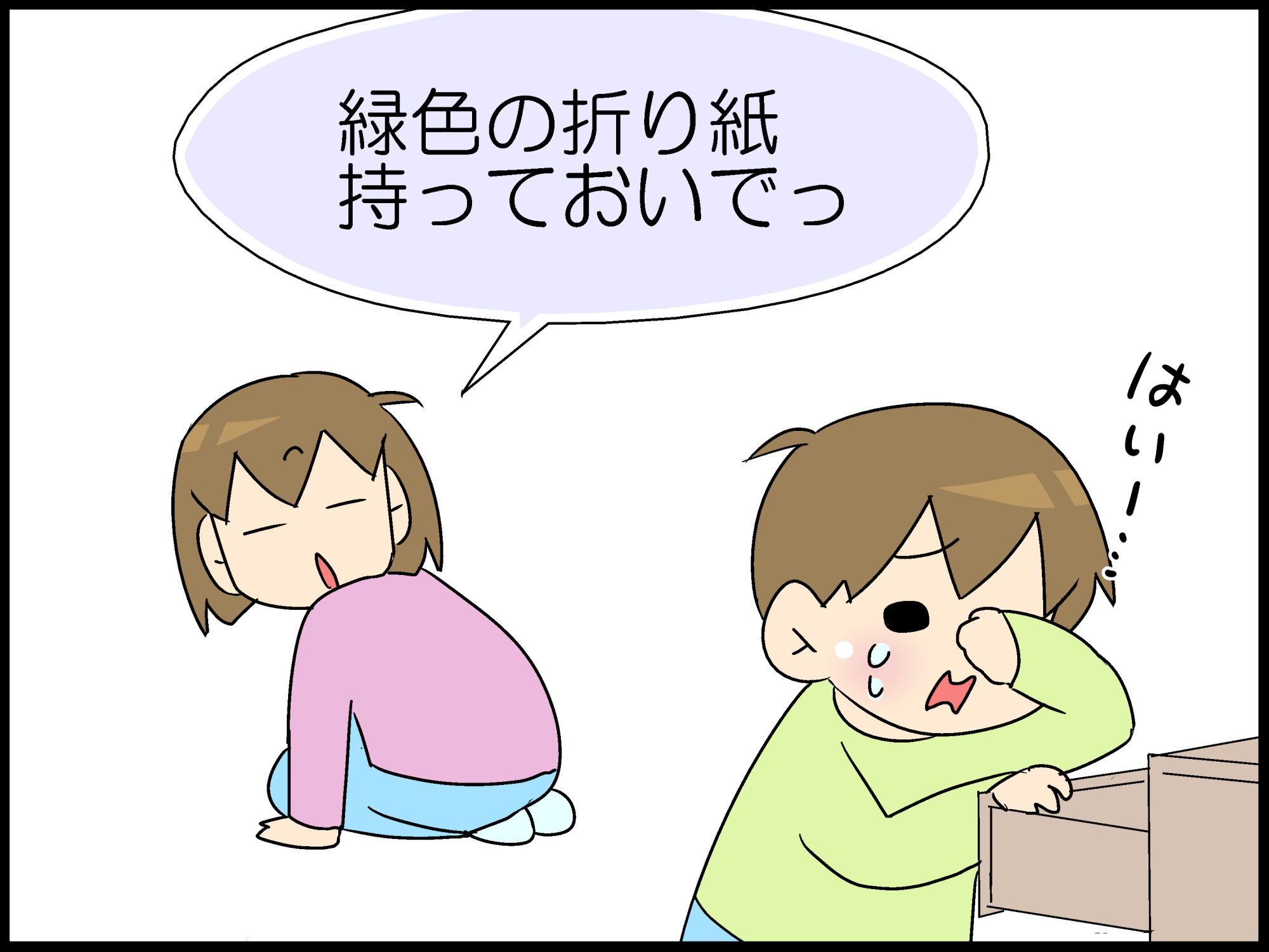「まえ」と「うしろ」の2枚の折り紙。
