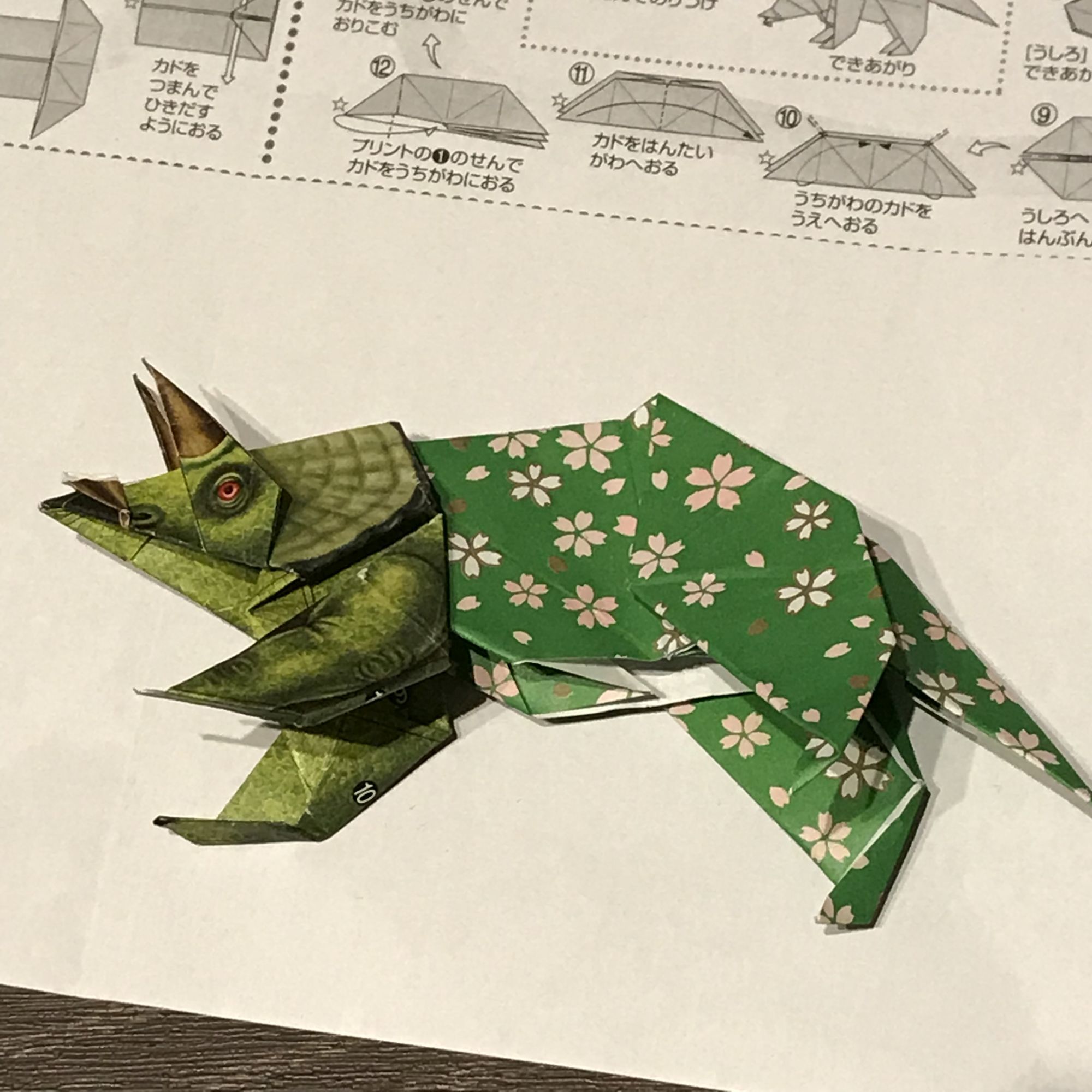 トリケラトプスの折り紙は