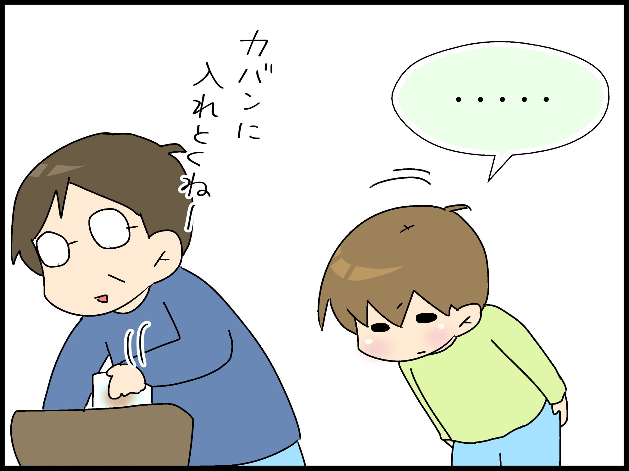 手紙を書いて渡した、こもたろ。