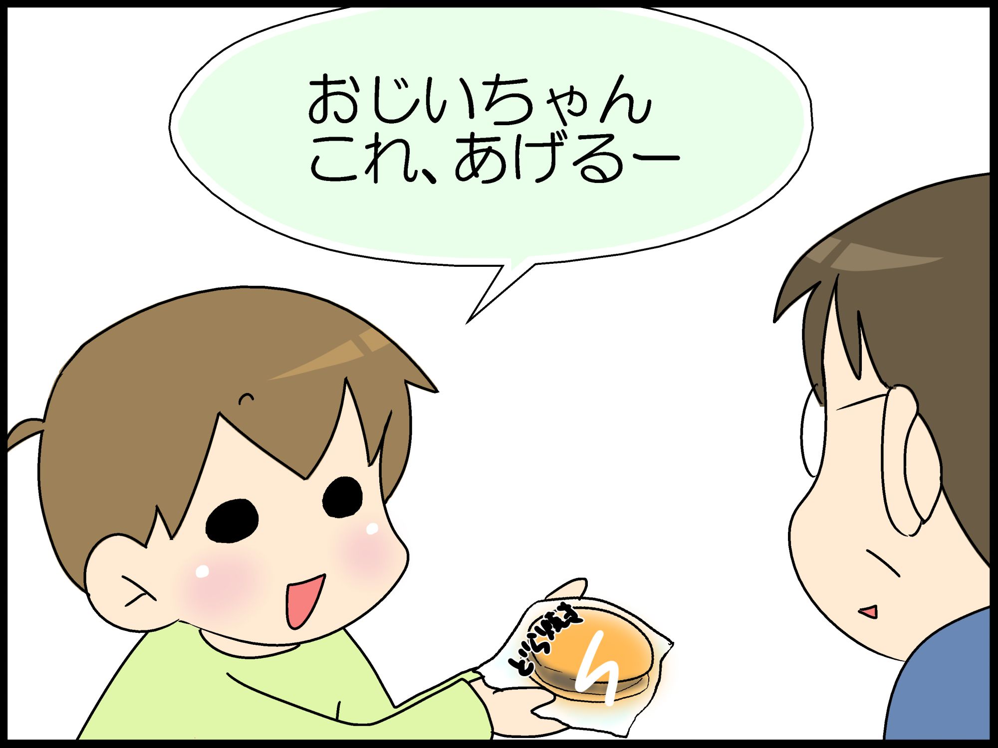 どら焼きを爺ちゃんにあげていた。