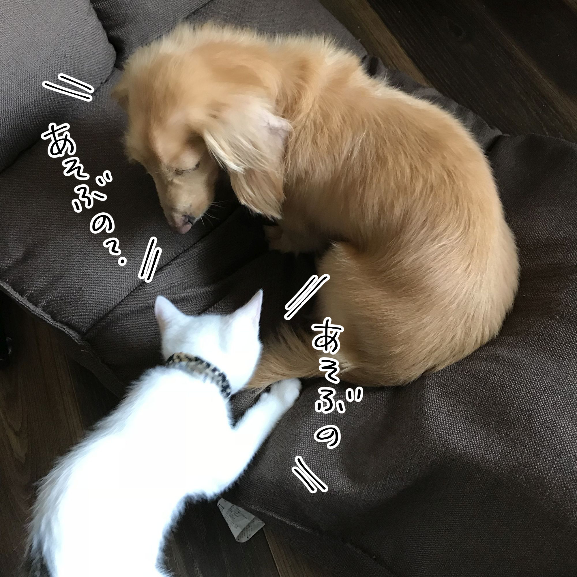 ワンニャンが仲良く家庭に居る図...