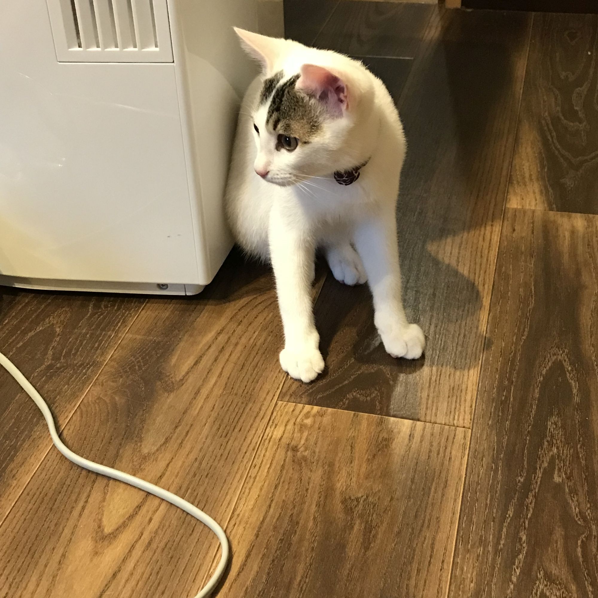 除湿機にピッタリくっつく、ポン太。