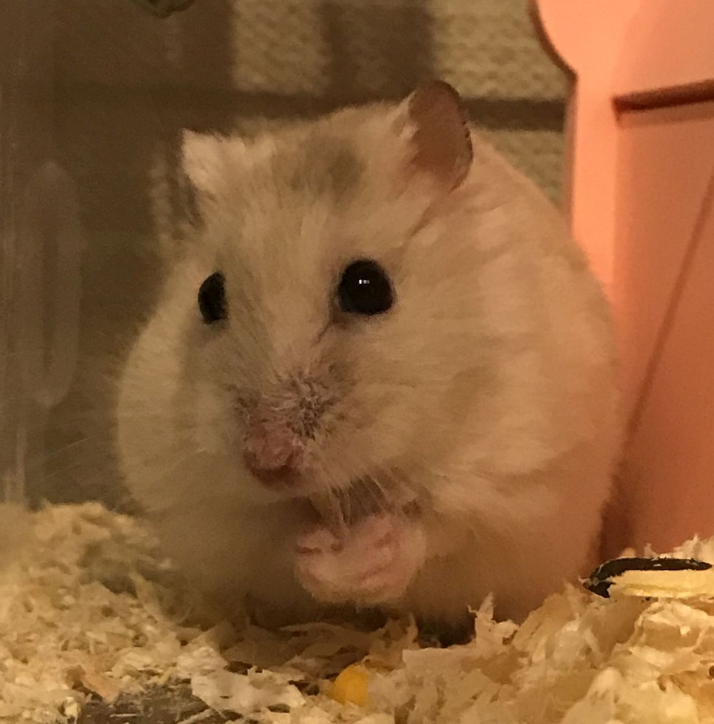 これは、木くずを頬袋に入れて