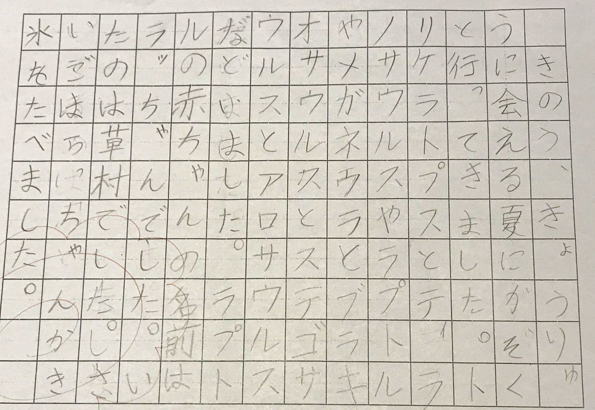 最初「~がいました」って書いたけど、それが全部じゃないから「~などいました」って書き直してるのが見えて、先生とこもたろがやりとりしながらハッピーミディアム(折衷案)導きだしてるのが伝わってきて凄く微笑ましいですね。