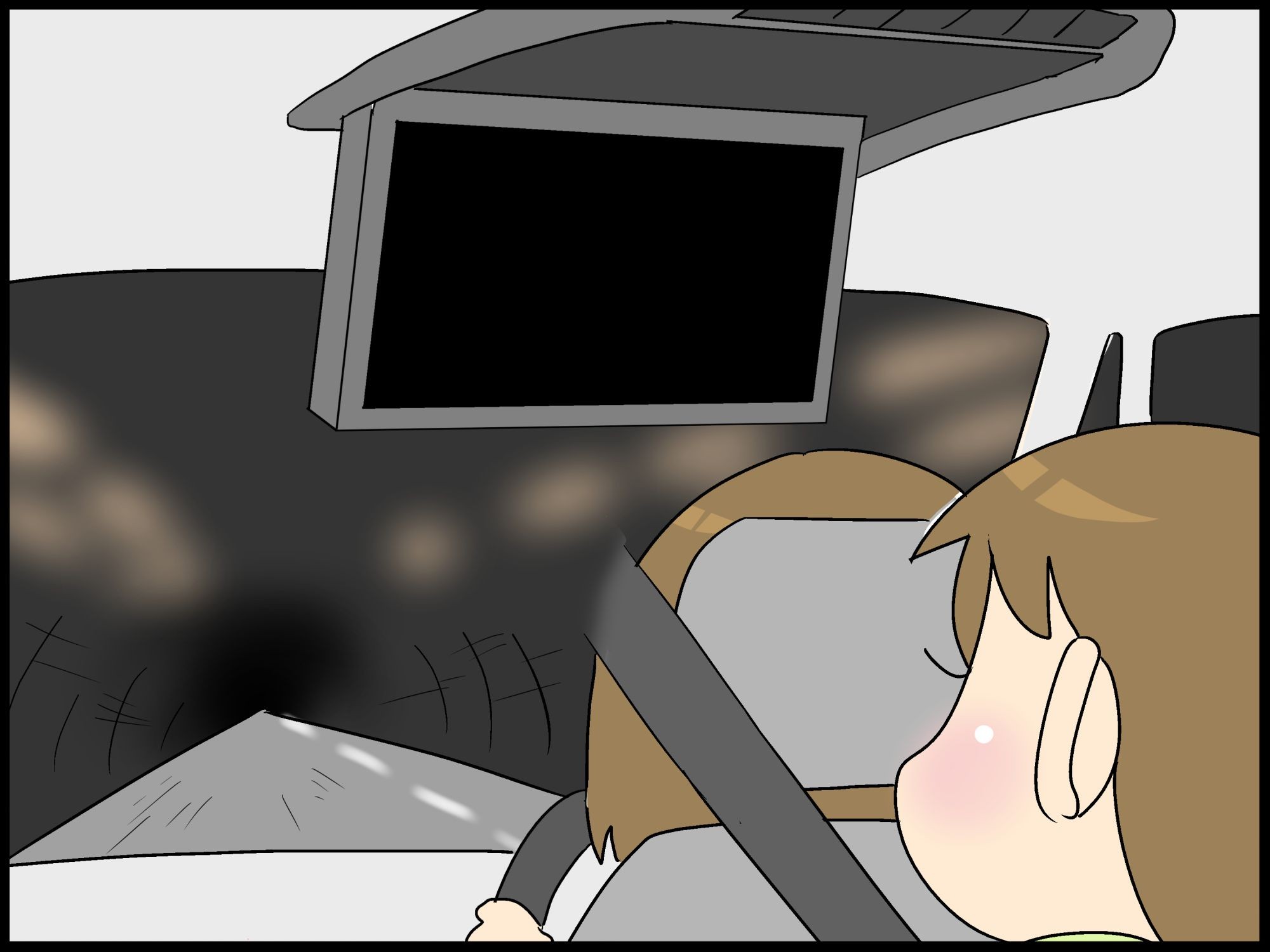 後部座席の子どもたちはTVを観ていた。