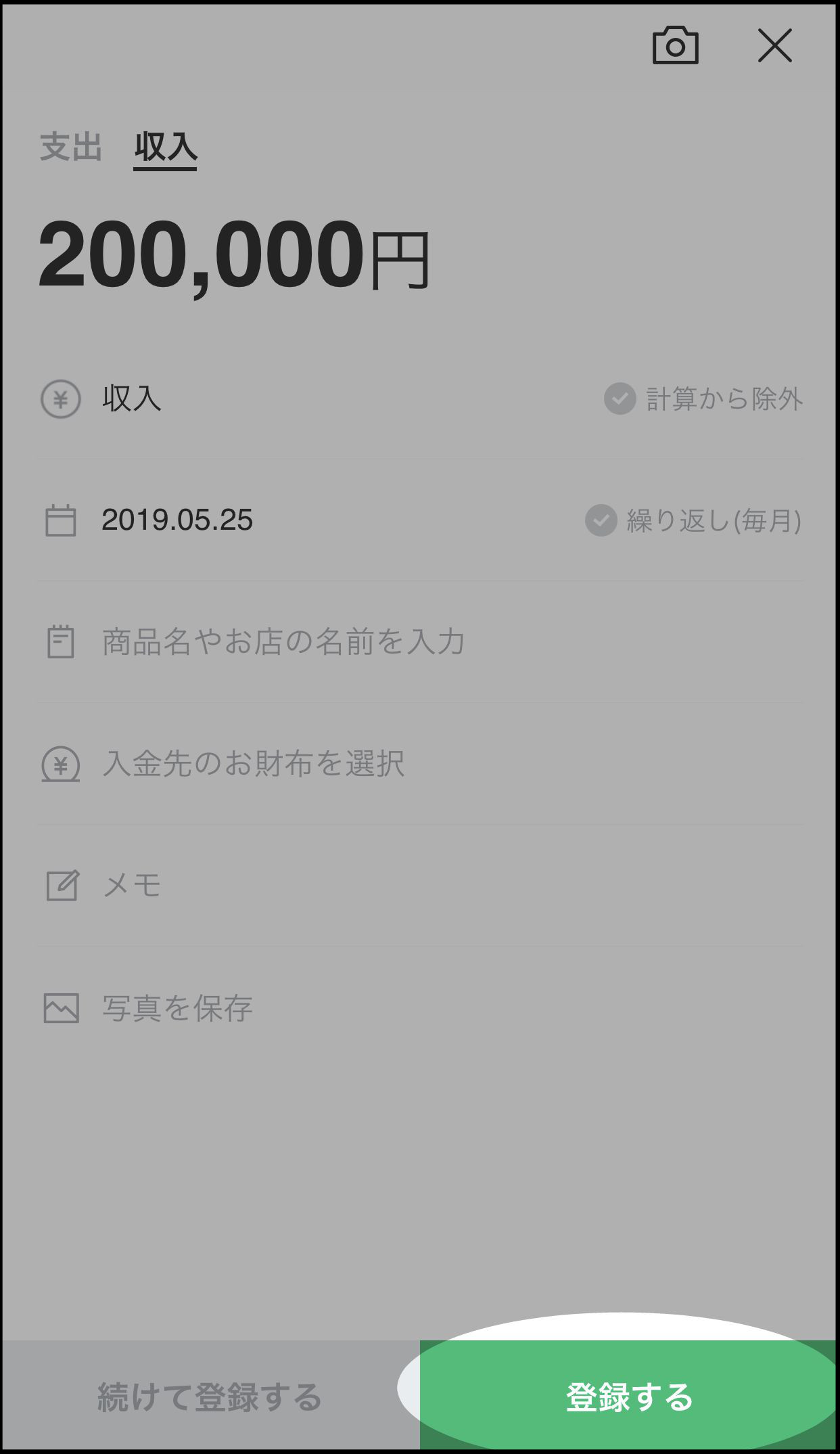 これで収入の入力完了。