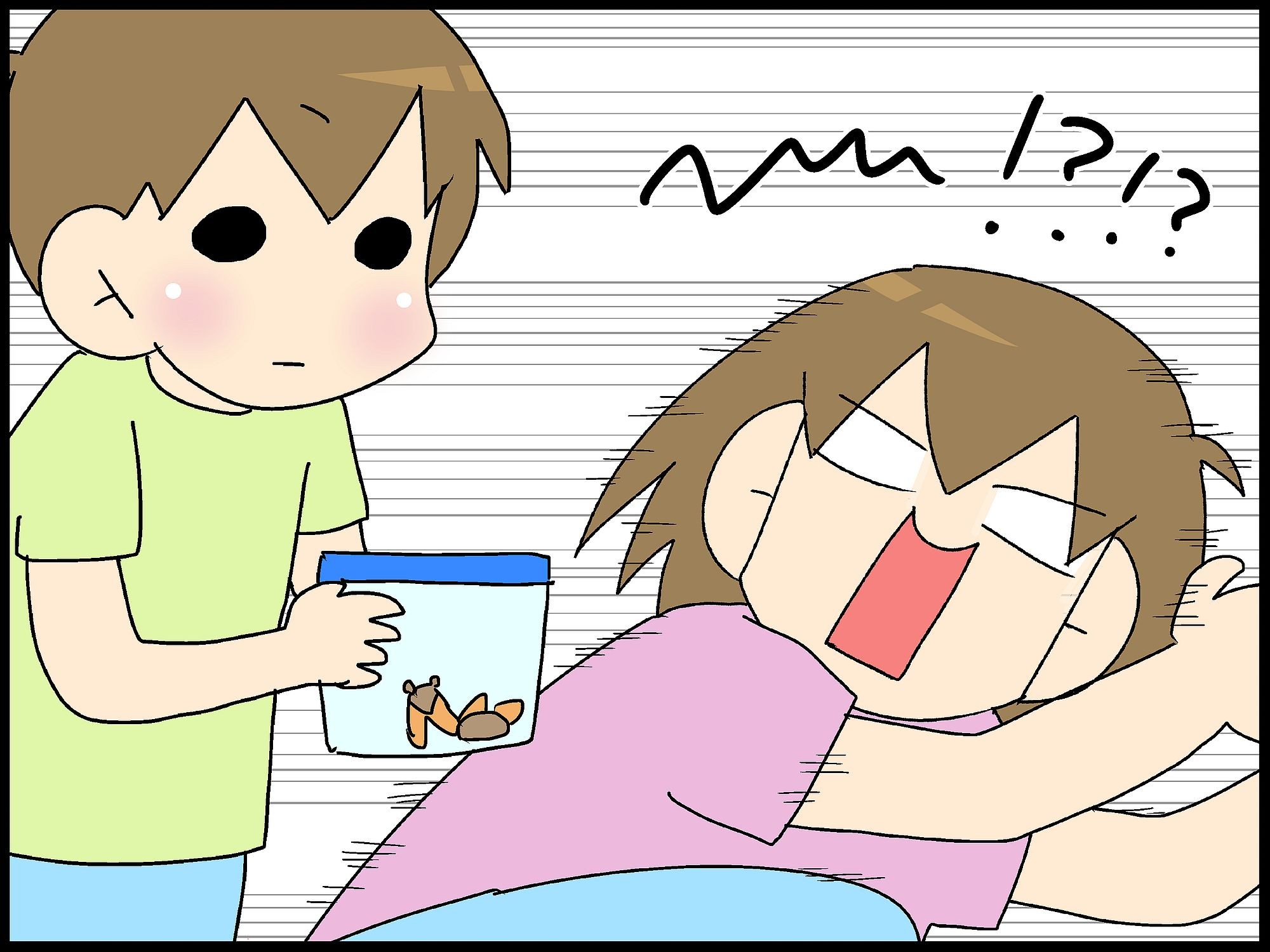 どうやら、母に虫とりの成果を見せたところで