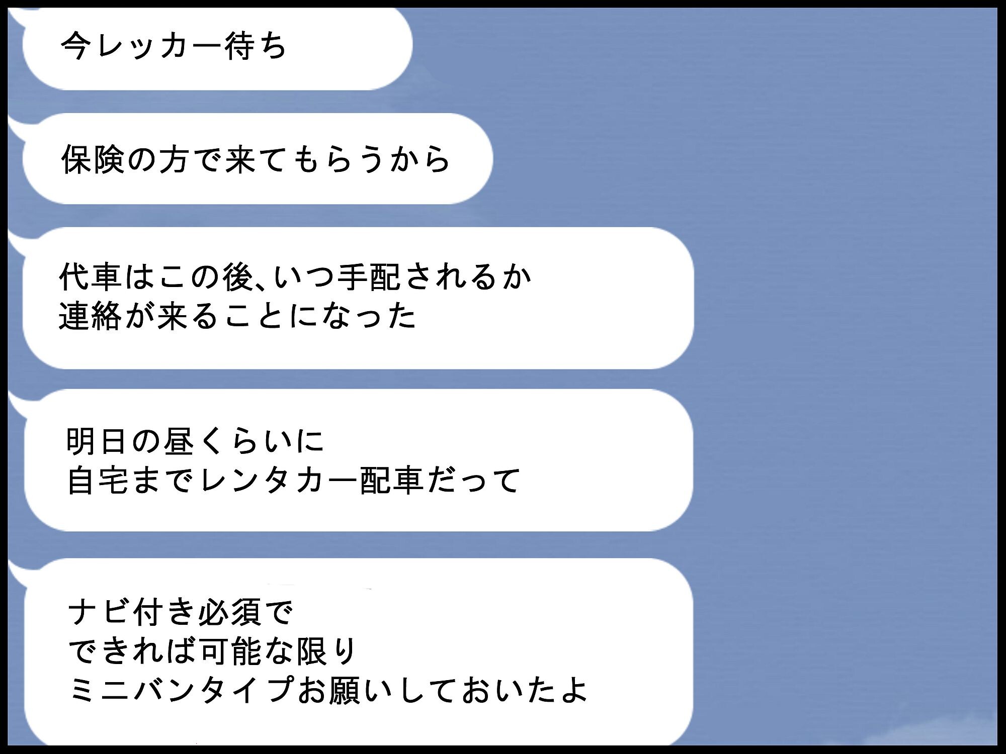 保険の特約で、代車を頼めそうだと。