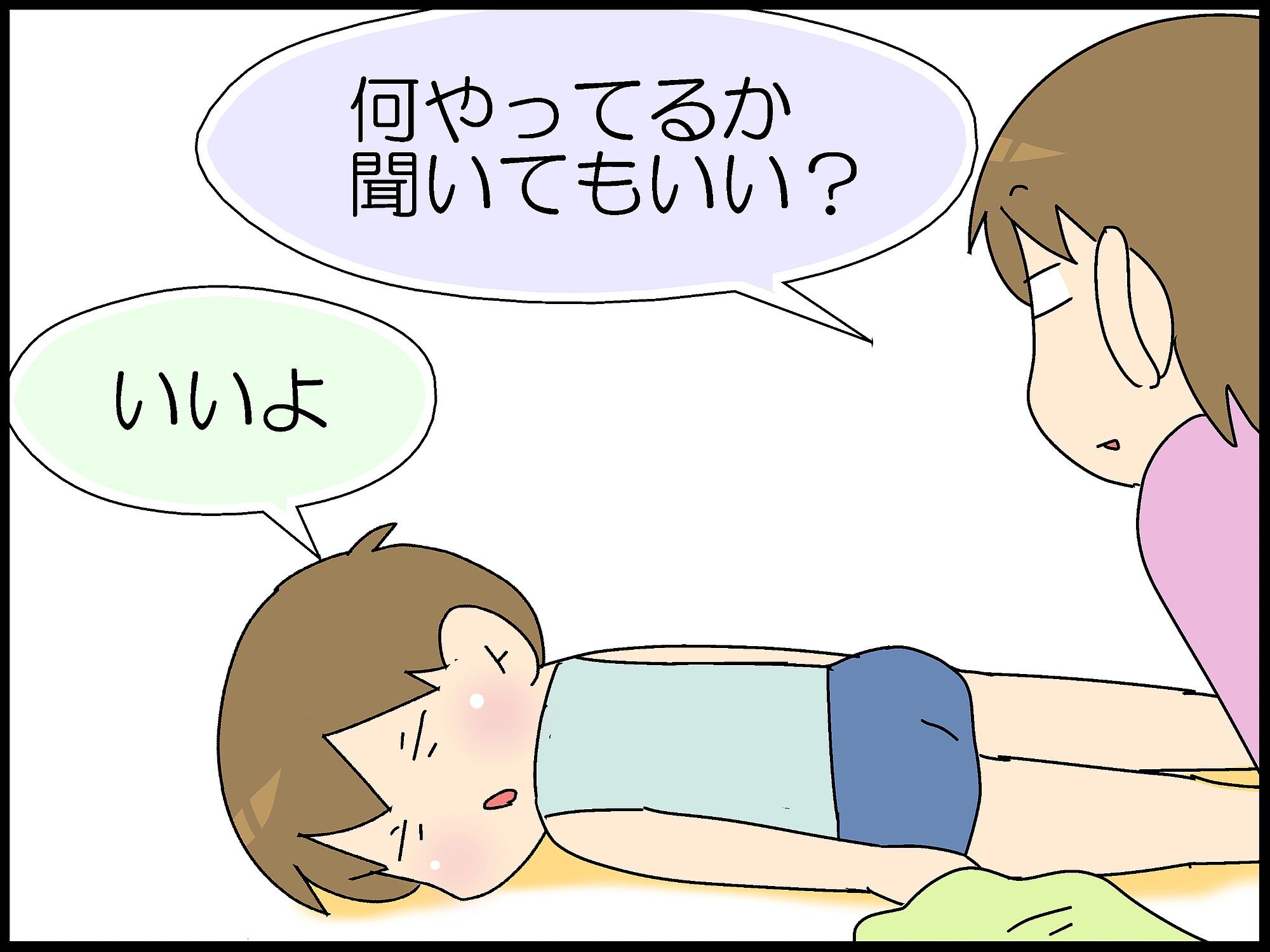 私は(一応)定型発達ですが、モロさんの「何をしてるか聞いてもいい?」という声かけにはイエスorノーで答えてしまうかも!って思いました。だからなにってことはなくオチもありませんが、一感想として受け取っていただければ幸いです。