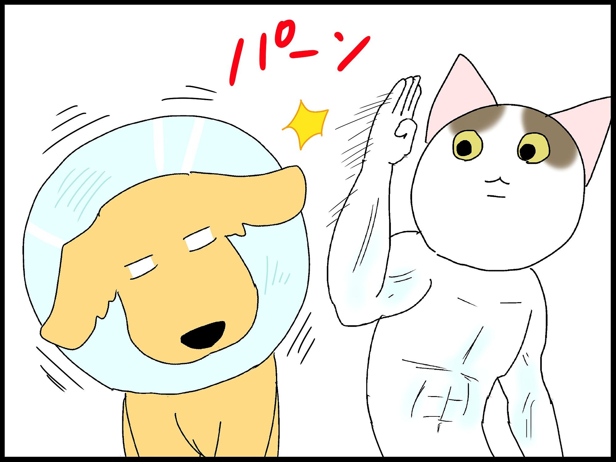 エリザベスカラーに猫パンチ。