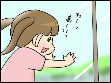 こもたろくん、ちょっとビックリ?楽しんでるかなと思ったんですが。(私は高所で足腰がカクカクします(笑))