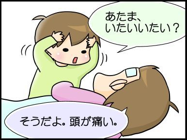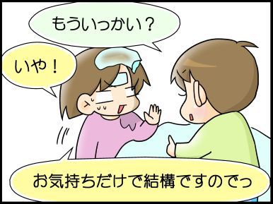 こもろ姉ちゃんが額に熱さましのシートを貼ってくれたので