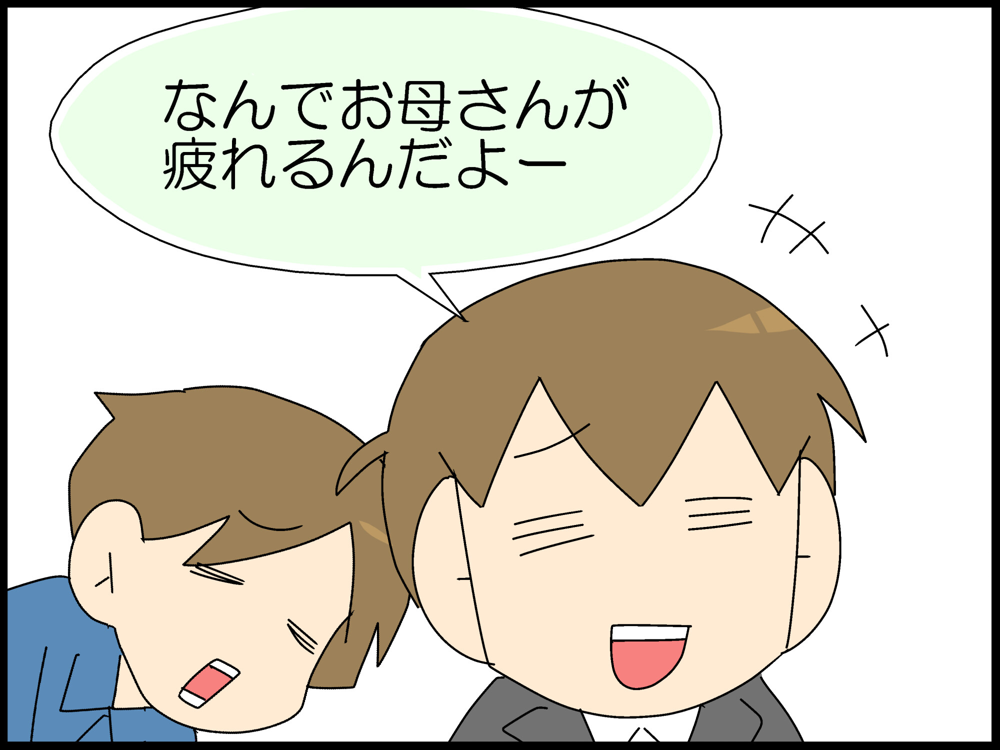 でも、お母さんの一言に、笑ってもうやめるよと言えるこもたろくんが素敵です。