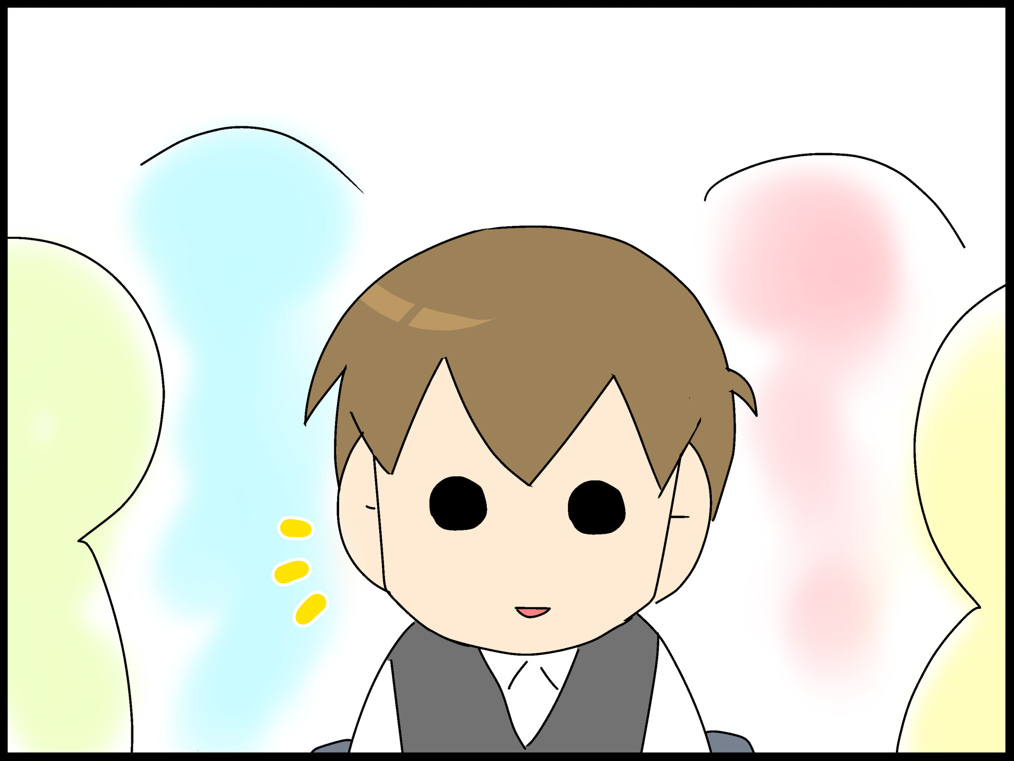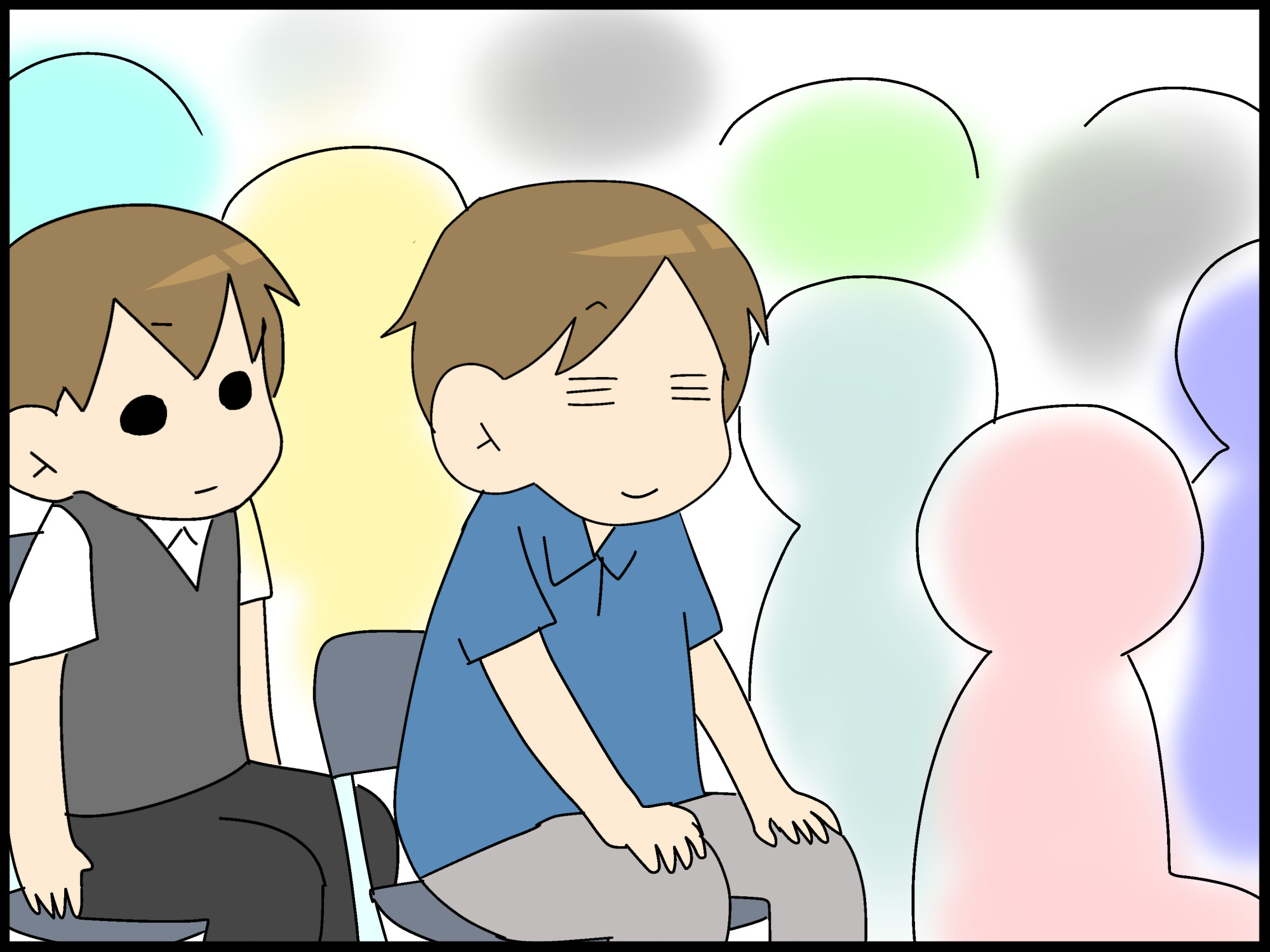 (自分の後ろに座っているのは、こもたろくんだ。