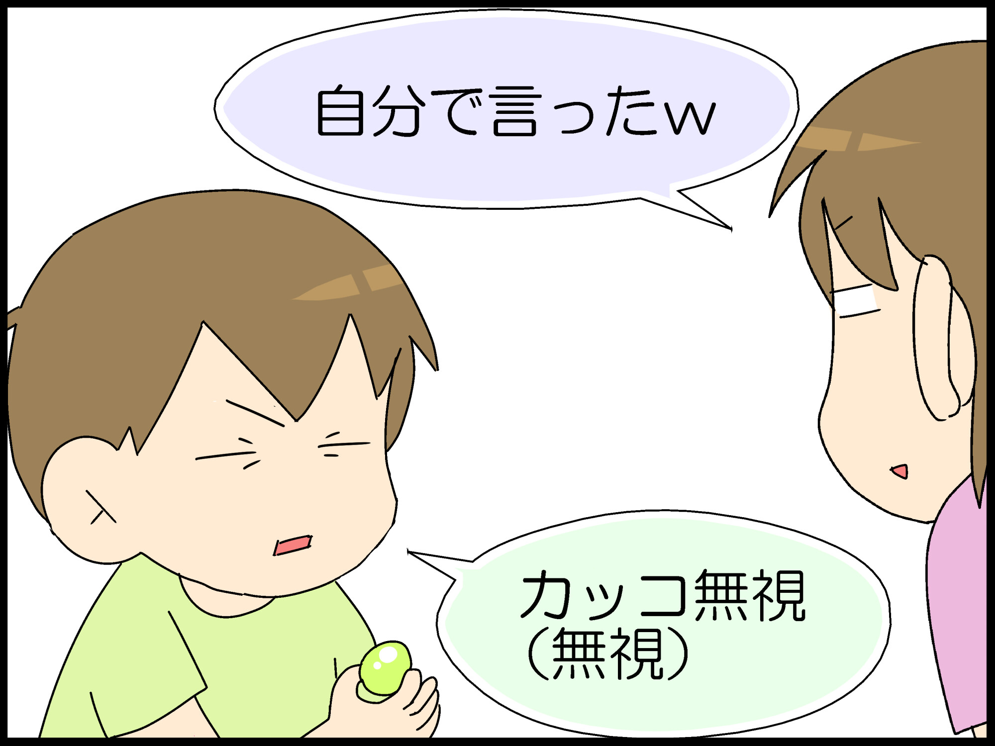 うちの子は、(笑)やwを、ワラって言うんですよね。