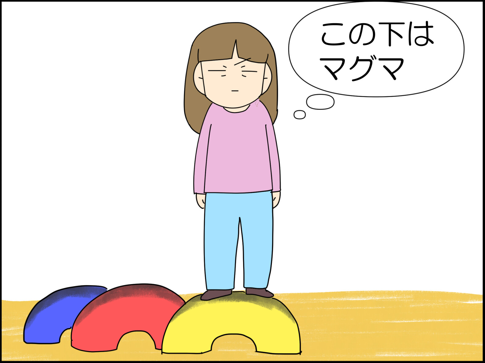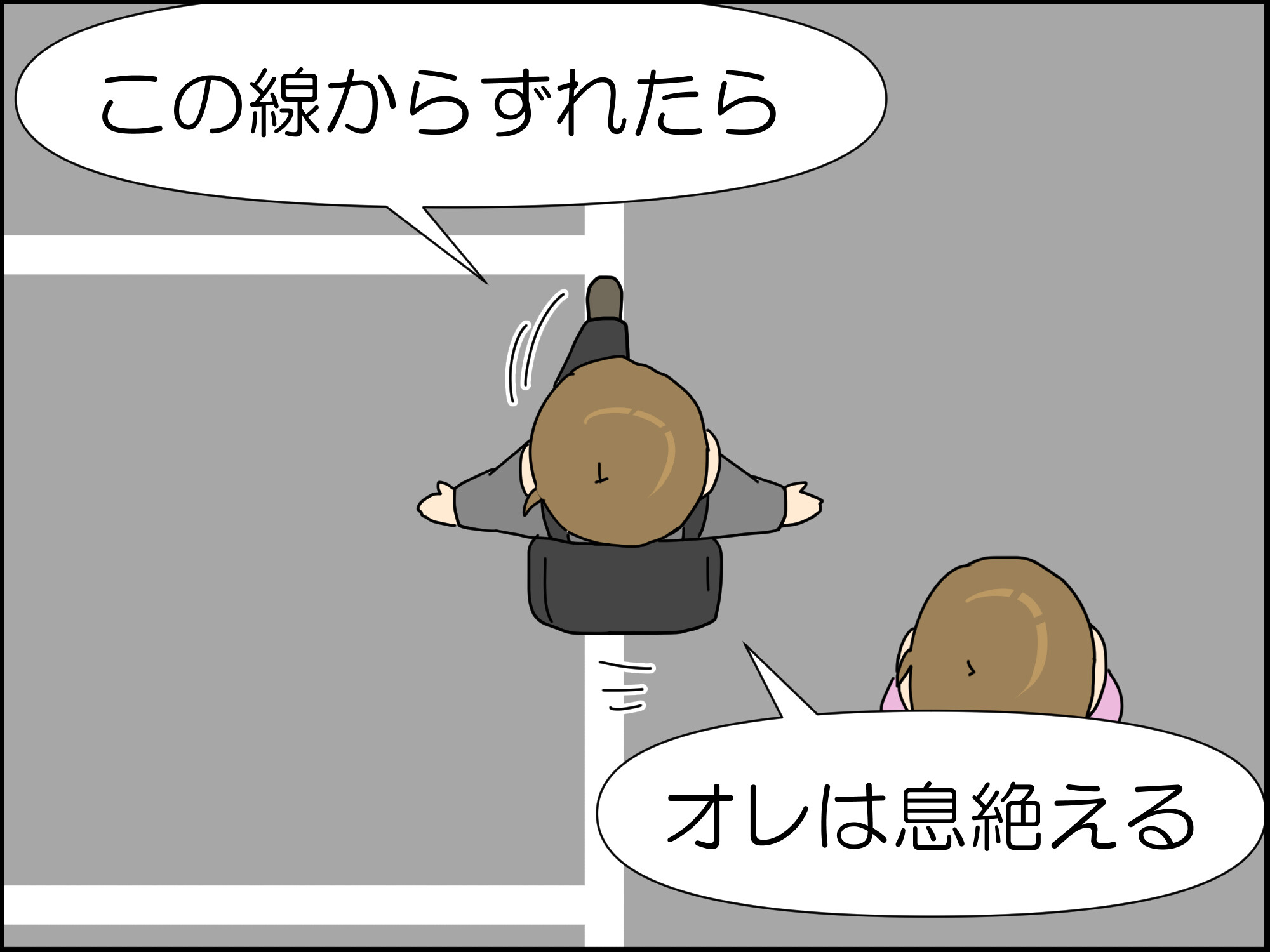 うちの子どもたちもやります、駐車場の線とか、縁石とか。落ちたら息絶えるって。