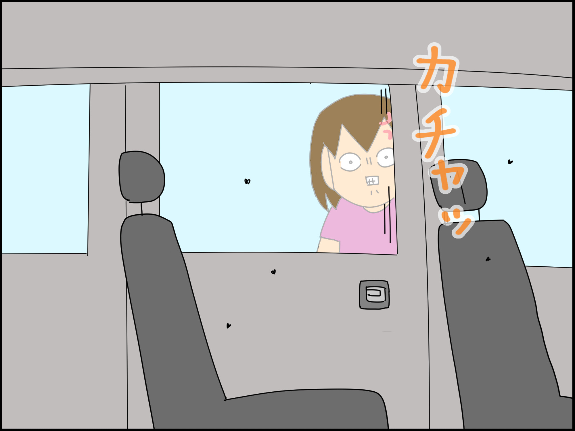 2匹の蚊が車内へ。