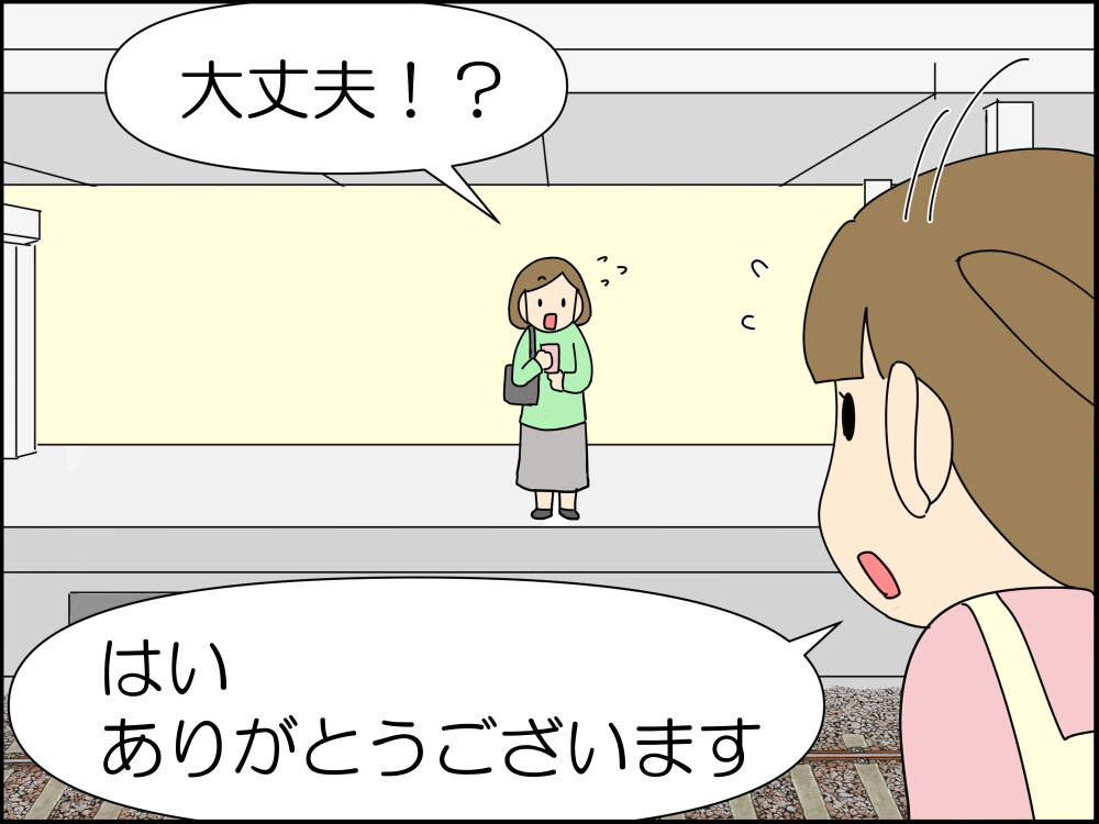 抵抗出来て良かったし、向かいのホームの女性がたまたま見てくれていてよかったです!
