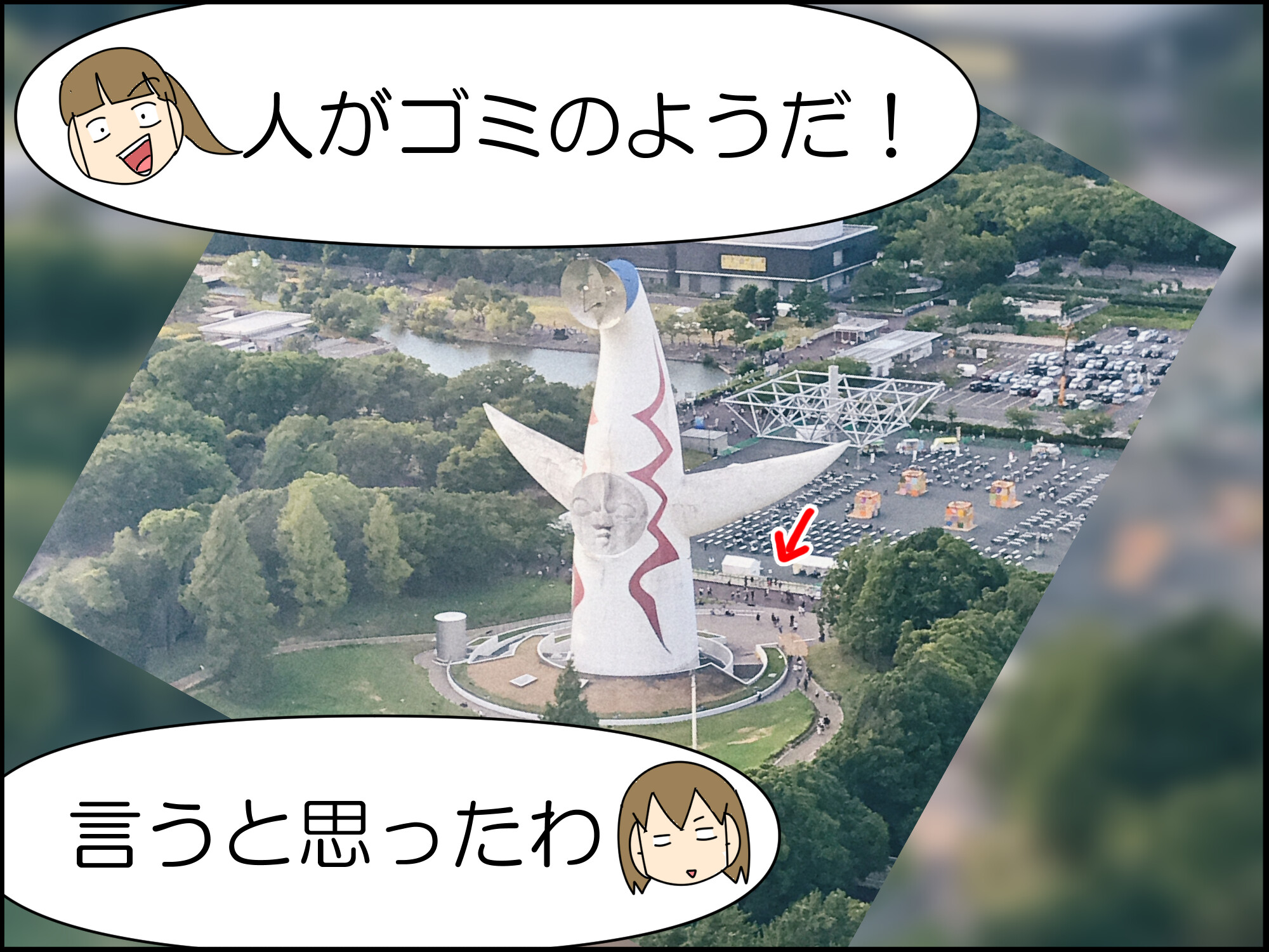太陽の塔のコスプレは、肩車した二人仕様ですかね?w