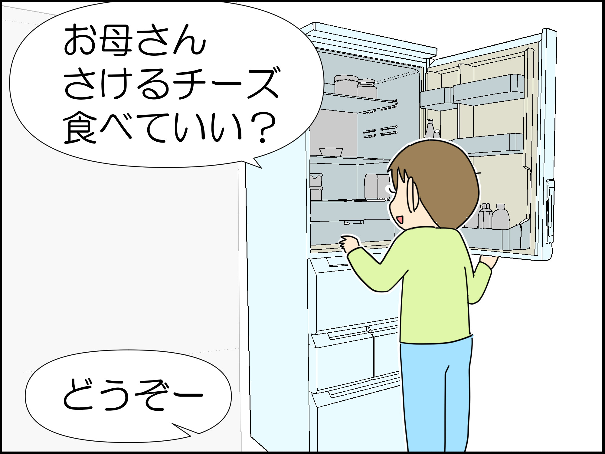 こもたろが冷蔵庫を開けて