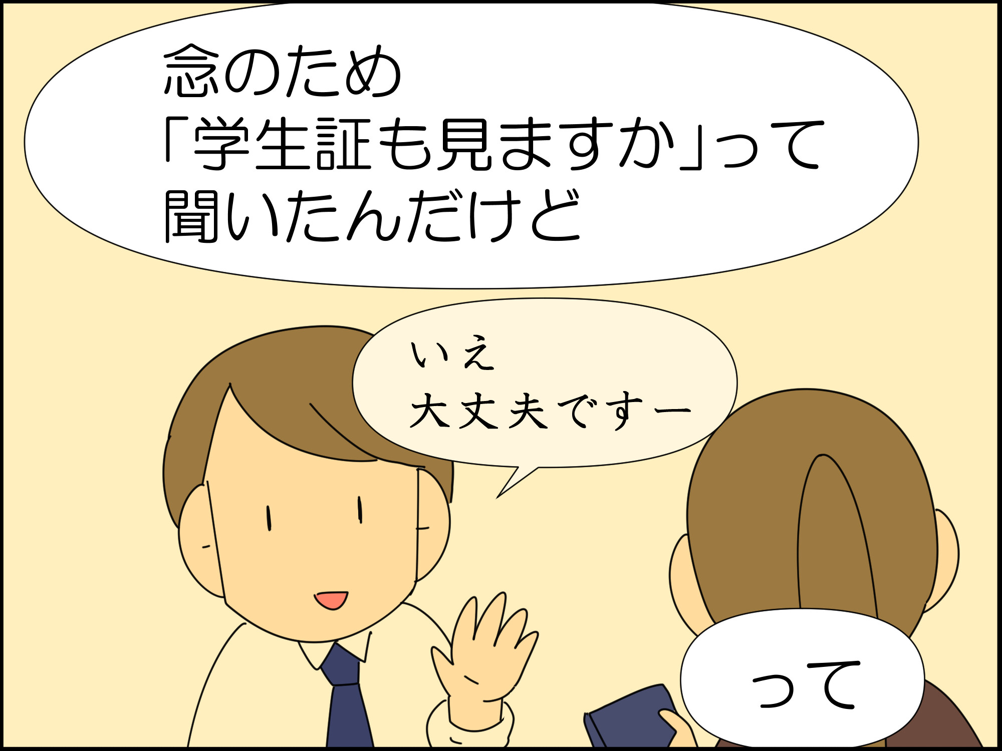 銀行員からの「これで大丈夫ですよ」に飲み込まれずに、「学生証を見せますか?」と言えたこもろちゃんさすがです!!👏👏👏