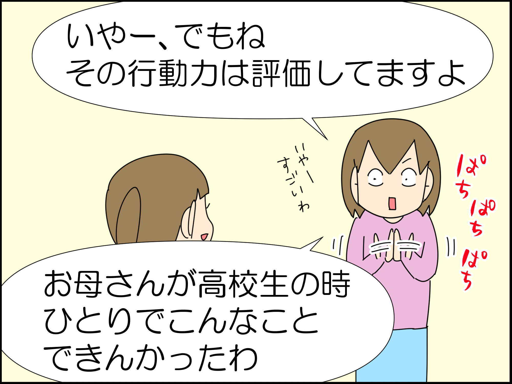 【何が良くて何が悪かったのかを冷静に一つ一つ話し合って確認して、最後はこもろちゃんの行動力を褒める】