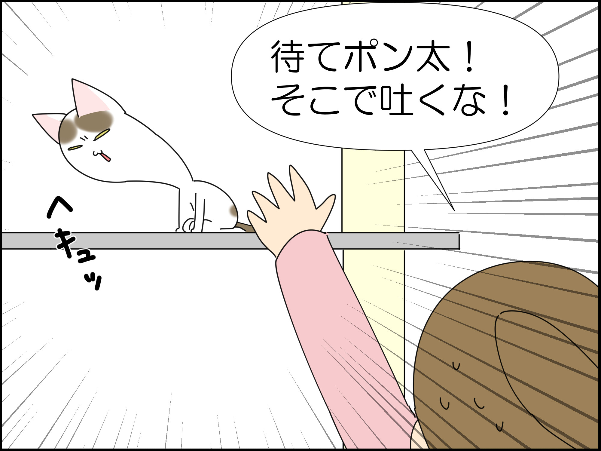 ポン太、はじめて毛玉を吐く。