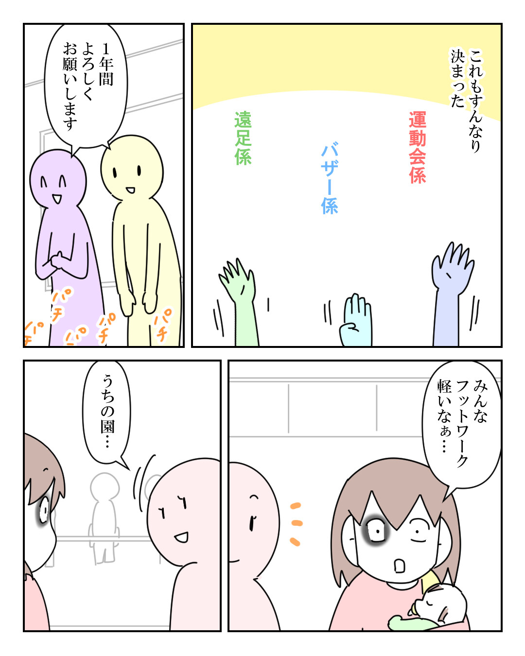 結果、年長クラスの役員さんは一人っ子の保護者が自動的に当たってしまって右往左往。