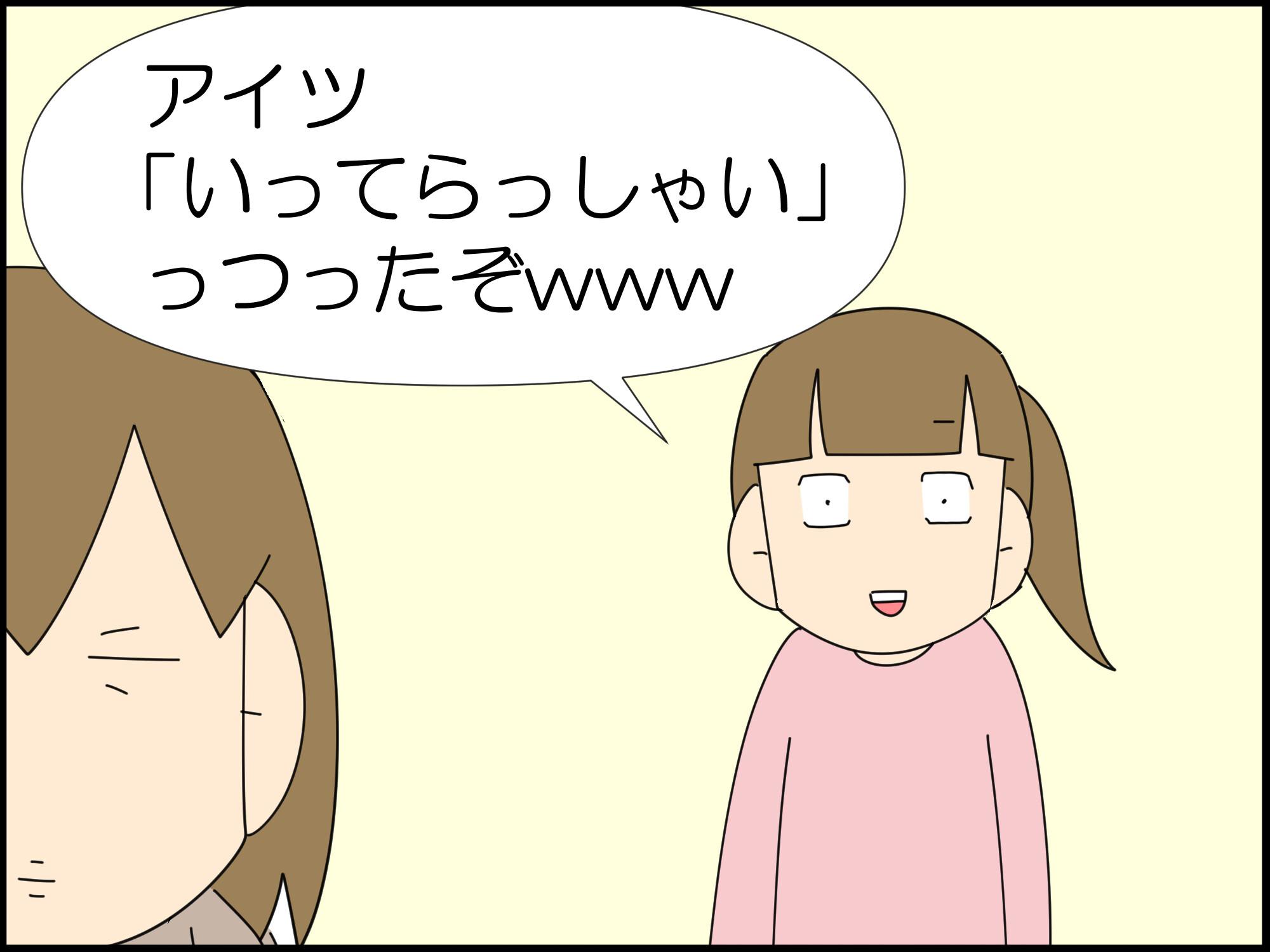 「誰かが出掛ける時→いってらっしゃいを言わねば」なんでしょうかね。自分がトラブルの時でもそこは忘れない。特性?(門外漢のド素人が言及してしまってすみません)なのか元々の性格なのか分かりませんが、こういうところ、素直で生真面目で、本当に根っからいい子なんだろうなとほっこりします(^ ^)