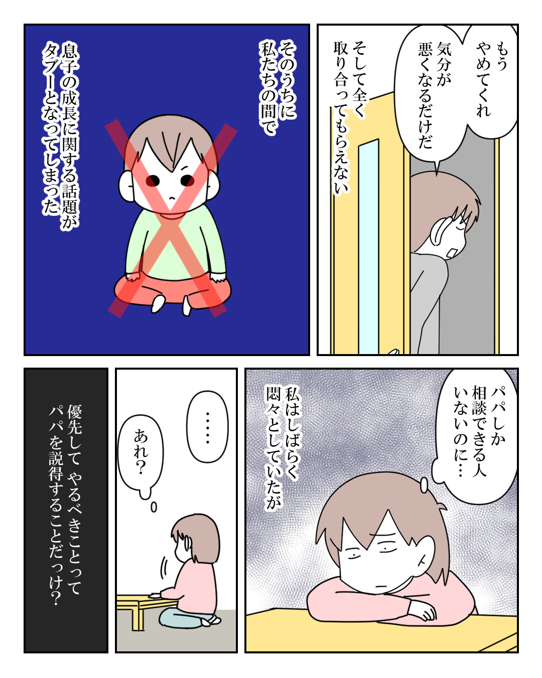 夫にもその話をしましたが、理解は得られなかったです(息子には必要ないって言ってました)。