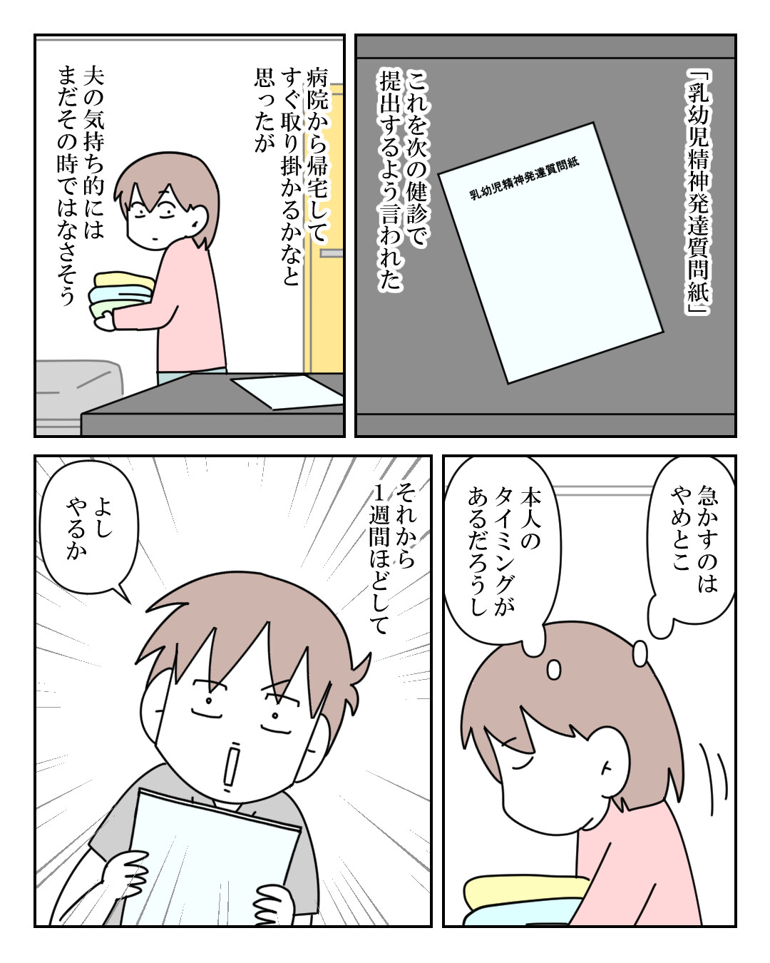2025-7-29 【インスタ漫画】第406話。正式な診断まで④ インスタ用漫画先読みの更新!ただいま可能な限り、夕方も更新やってます(主に平日)本日、第406話。知ってた(母)次の話はコチラ。 moroのインスタはコチラおまけ漫画がよめます。 「インスタ漫画」カテゴリの最新記事 タグ :#過去話#こもたろ#自閉症#発達障害#幼児 < 前の記事次の記事 > コメント コメント一覧 (6) 6. トロ 2025年07月30日 09:18 結果的に協力的になったくれたのはいいけど、 こもたろ君のこと、何も知らないじゃん、、苦笑 ここまで何もかもmoroさんに聞かないと分かってないのに、 よくもまぁ、あんなひどい言葉をmoroさんに投げかけましたよね。 私だったら「そんなことも知らないのに、障がいはないとか、 そんなに障がい児にしたいのか、みたいなこと言えたね!?」 ってキレちゃうかもです。ってかキレちゃいます、間違いなく笑 根に持ってないmoroさん本当に偉いです。 0 morokomoro がしました 5. ああ、でも。 2025年07月30日 05:47 我が子が発達障害児とわかっただけで離婚とか切り出すばか夫もこの世にはいると聞くから遅ればせながらでも受け止めた旦那様はえらい。 0 morokomoro がしました 4. ななしさん 2025年07月29日 19:55 父ちゃん、左利きなんだ。ってどうでもええとこ気になったw 0 morokomoro がしました 3. れい 2025年07月29日 19:43 父ちゃんに渡すあたりさすがプロですよね 書きながら遅れに気付けるようになってるですもんね 0 morokomoro がしました 2. 白猫 2025年07月29日 19:12 母ちゃんはその過程をもう超えてんのよ...父ちゃん 0 morokomoro がしました 1. なろ 2025年07月29日 18:47 ご自分から質問紙に取り掛かろうとしてくれて良かったですね その時を辛抱強く待ってたもろさんもストレスはあったかと思いますが… しかし父ちゃんさん、たろくんの当時の発達面に関して凄く理解が遅れていたんですね…仕事がお忙しかったのかもしれませんが、もろさんにとったら「何を今さら…(ため息)」て感じだったんでしょうか… 0 morokomoro がしました コメントフォーム 名前 コメント 記事の評価 リセット リセット 顔 星 情報を記憶 コメントを投稿する