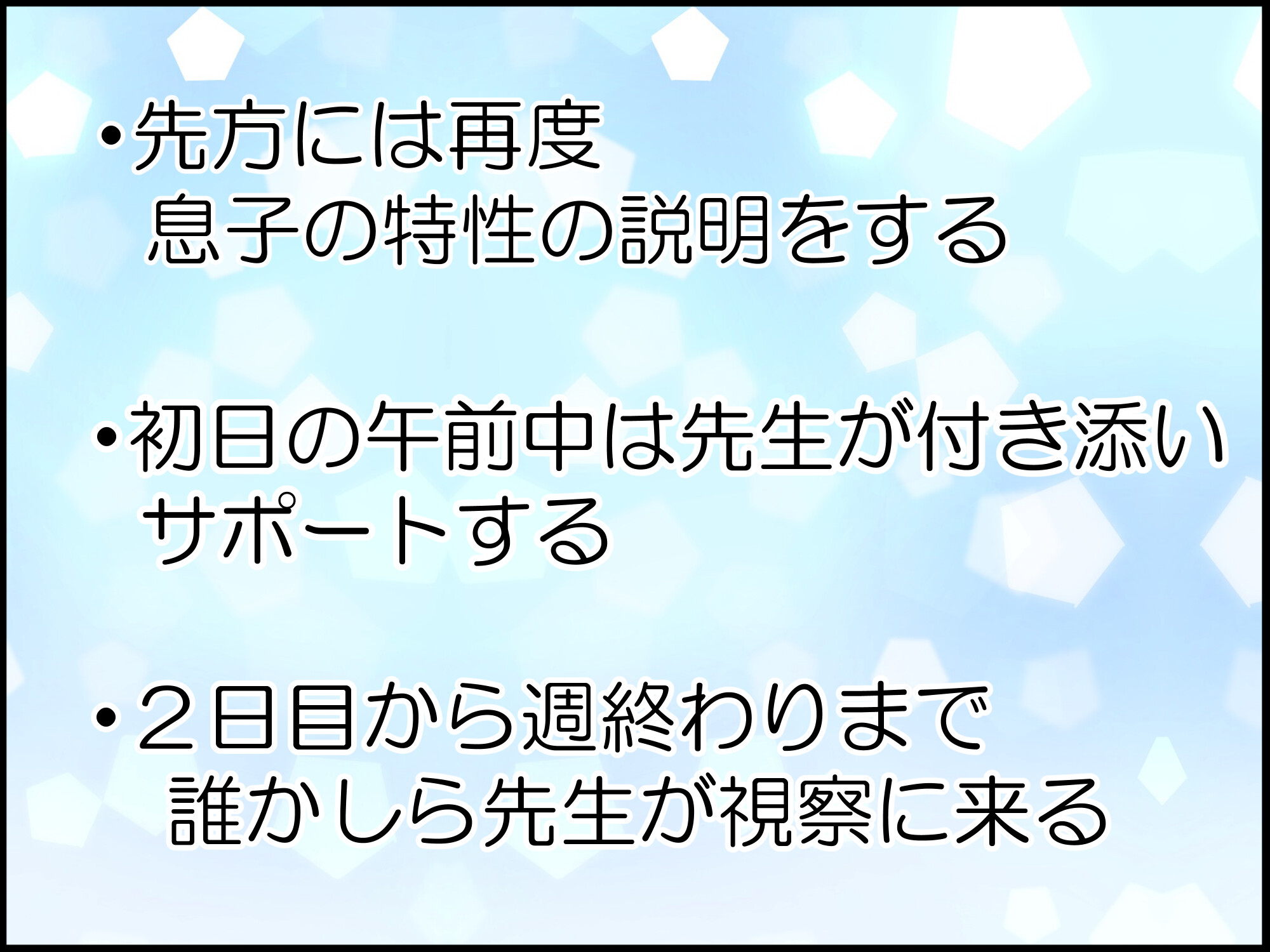ちゃんと予習(障害のことを下調べ)して、スケジュールをきちんと目に見える形にしてくれるなんて…