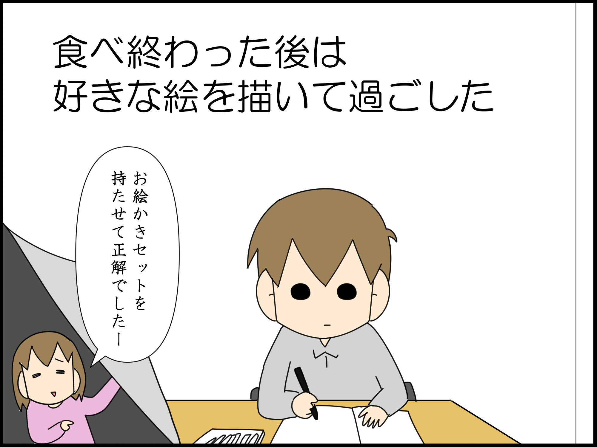 自分と置き換えちゃうからなのかな。でもこれがたろくんには気楽なのかな!お絵描きタイム邪魔されないし、褒めてもらえるし、たろくんにストレスなく生活できてるといいなぁ