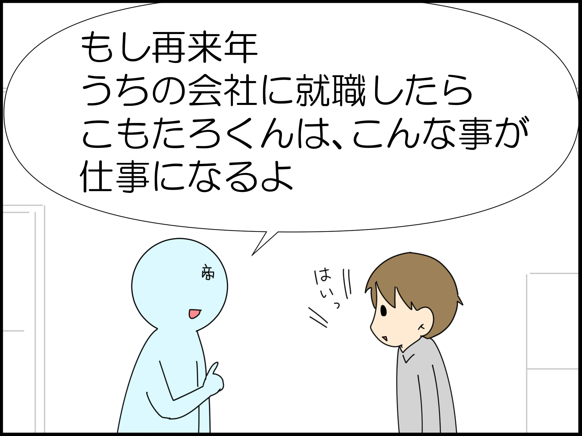 …最後のコマで、ちょっとこもたろくんの就職先がどうなるかわからなくなってきましたね