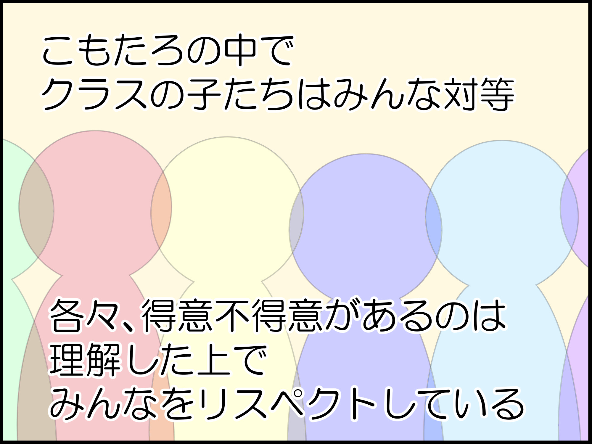 ただ、『配慮』が全員には当てはまらないこともあること、誰かへ向けた配慮が別の誰かを傷つける(嫌な気持ちになる)こともあること…。