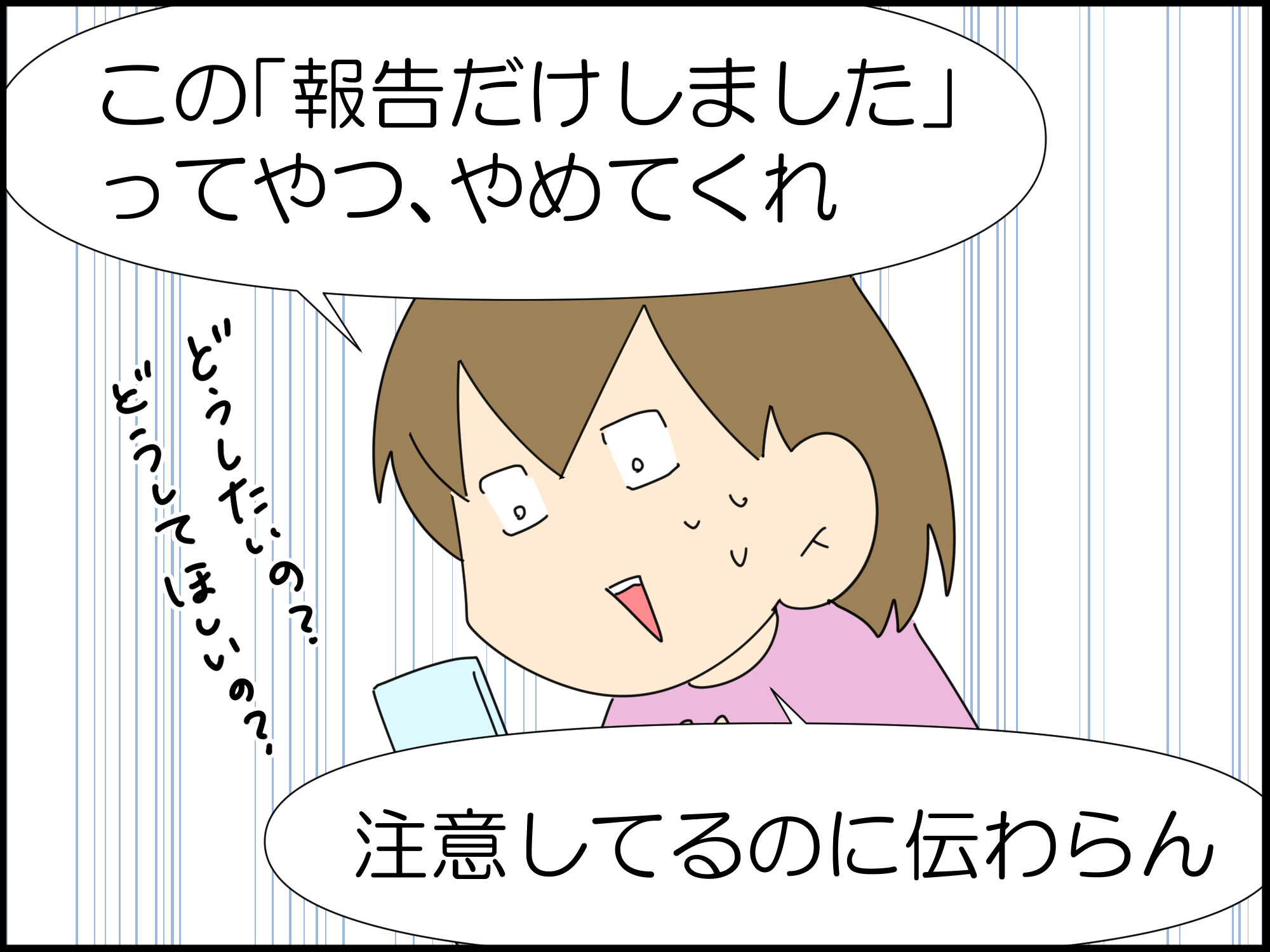 彼氏さんも報告だけ。基本読まないからさ〜、「報告だけは困る、どうしたいか、どうしてほしいかまで伝えてよ」と毎回伝えておりまする。