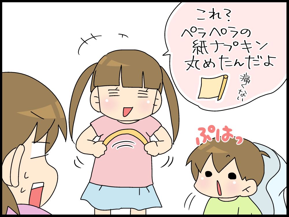 遊びの中で、ペーパーナプキンを使って叩く