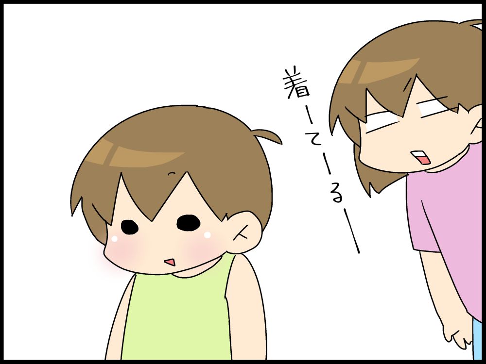 朝、自分でノースリーブを選んで着てます。